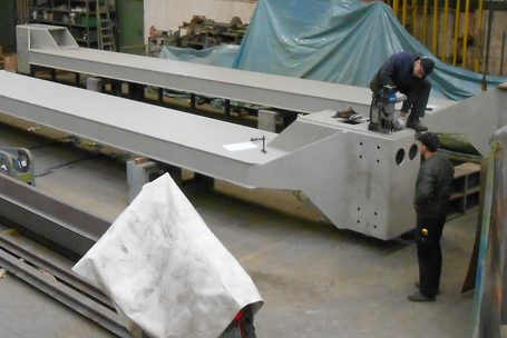 We produce advanced welding contructions and welded assemblies tied to drafts and standards up to a weight of 40 tons by using all common welding processes (MIG, MAG, WIG etc.) even automated by welding tractors or robots. Some examples of our work are machine frames and beds, press stands, housing structures or internal welding arms. We are the specialist for peripheral parts for machine and plant construction.